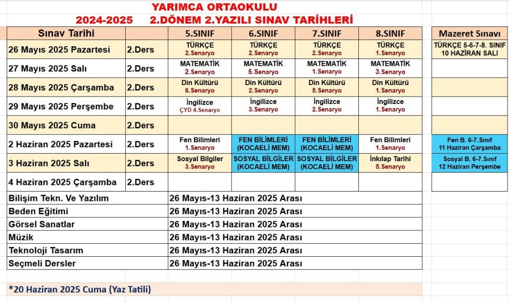 Okulumuz 2.Dönem 2.Sınav tarih ve senaryoları aşağıda yer almaktadır. Tüm öğrenclerimize başarılar dileriz.